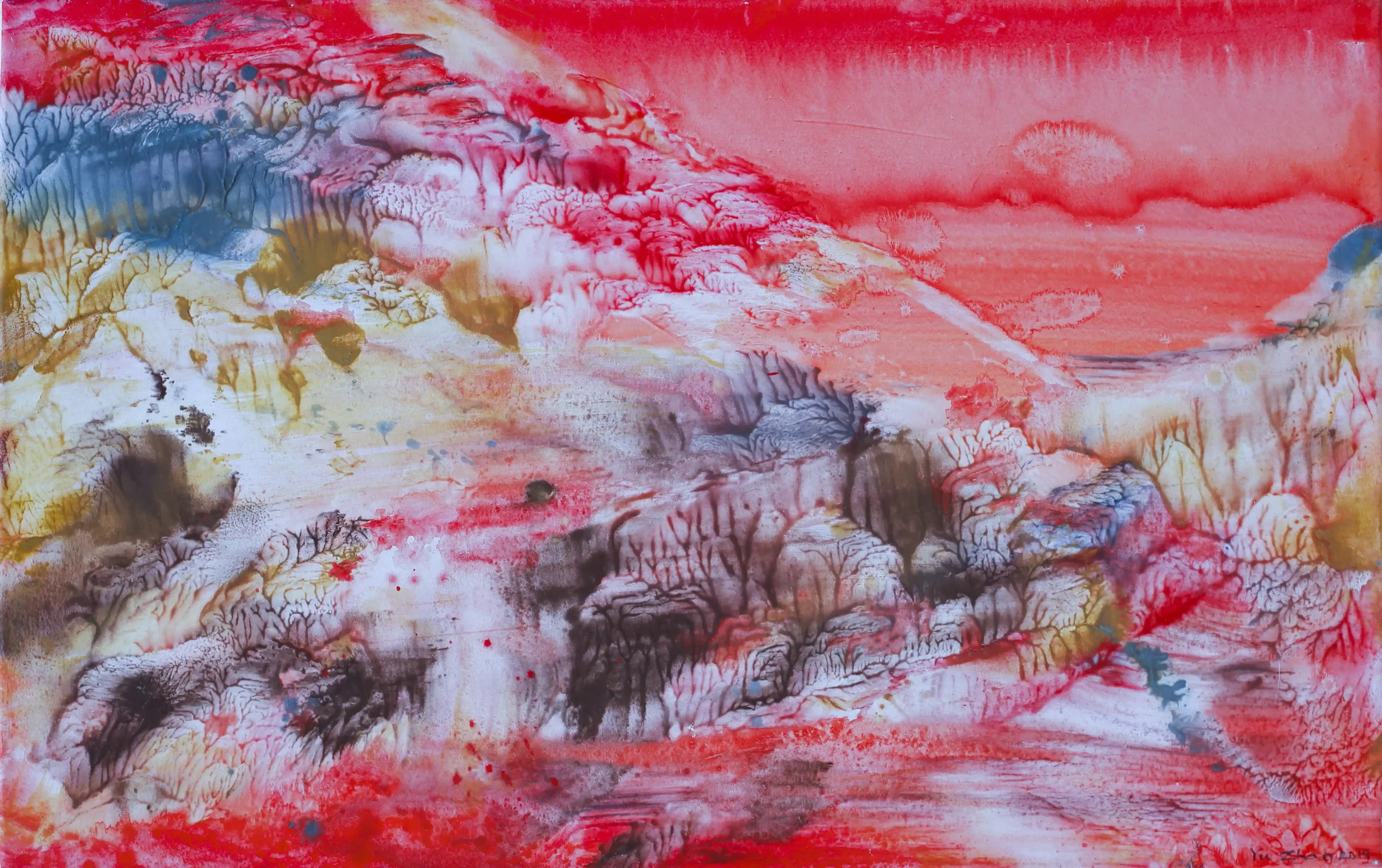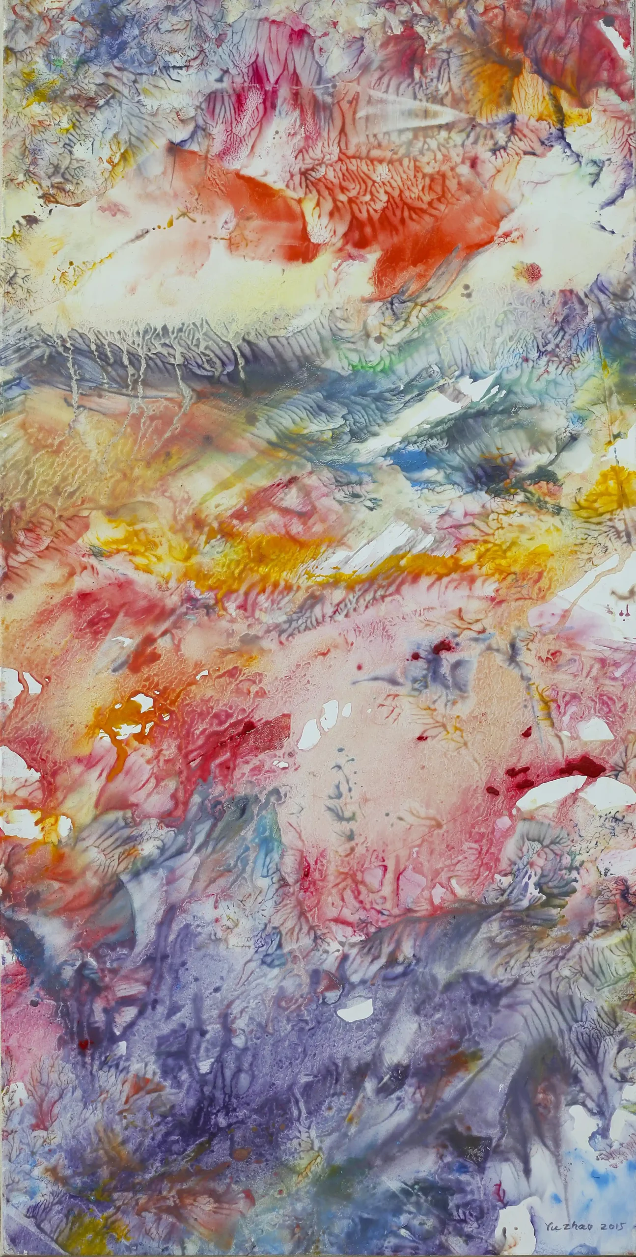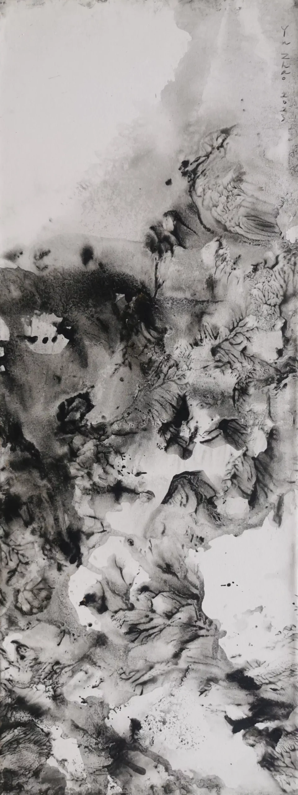Dans la continuité de la tradition chinoise, Yu Zhao rebrousse chemin pour saisir l’image source de l’art du pinceau. Son oeuvre se veut un champ préhistorique de l’écriture. Selon les anciens maîtres chinois, chaque trait calligraphique était comparé à une image « surréaliste », dynamique et évocative. Yu Zhao cherche à retracer dans sa peinture l’essence même de cet élan vital, en créant des paysages atmosphériqueset imaginaires.